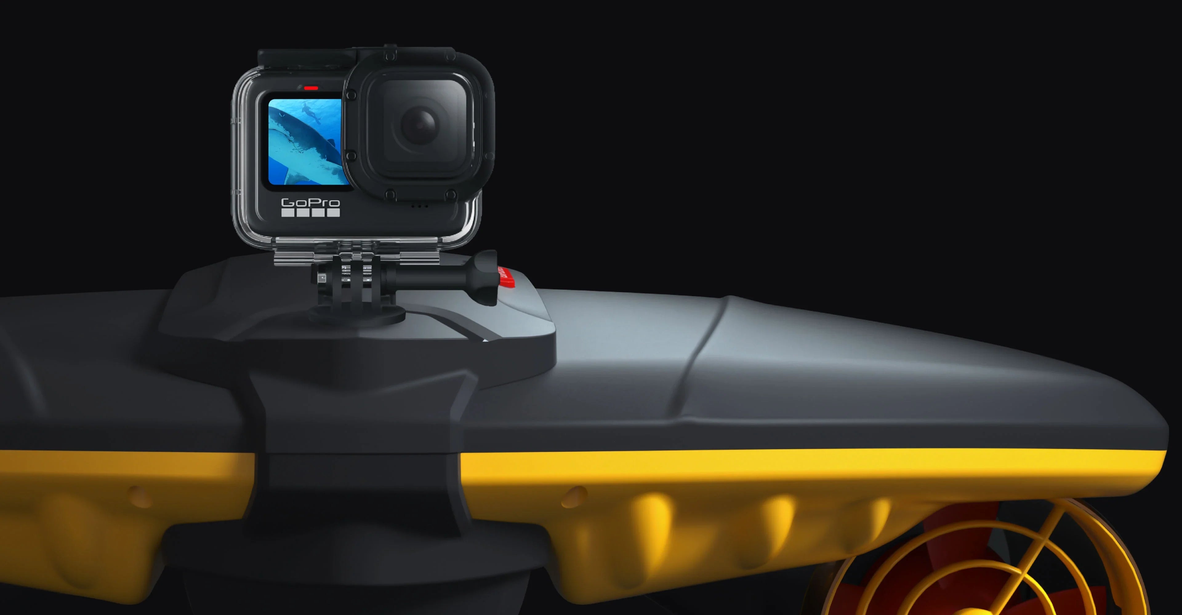 It can mount a Sublue photography platform where you can attach action cameras.